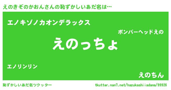 | 意味不明あだ名 | 『えのきぞのかおんフォーエバー』 |