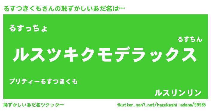 | 意味不明あだ名 | 『自称るすつきくも』 |