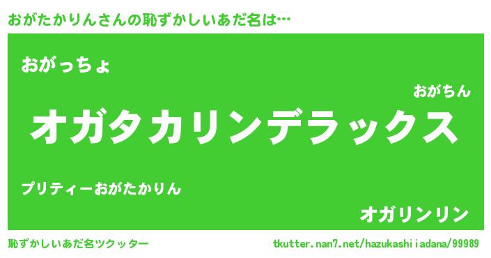 | 男性向けラノベタイトル風あだ名 | 『おがたかりんに滅ぼされるだけの簡単なお仕事です』 |