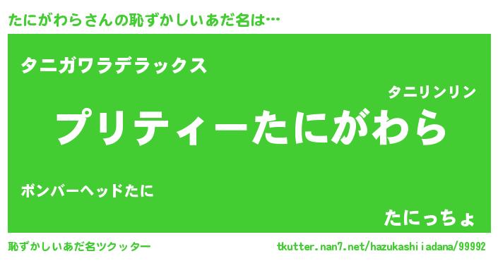 | ヒーロー風カッコイイあだ名 | 『仮面タニダー』『スーパータニガワラ』 |