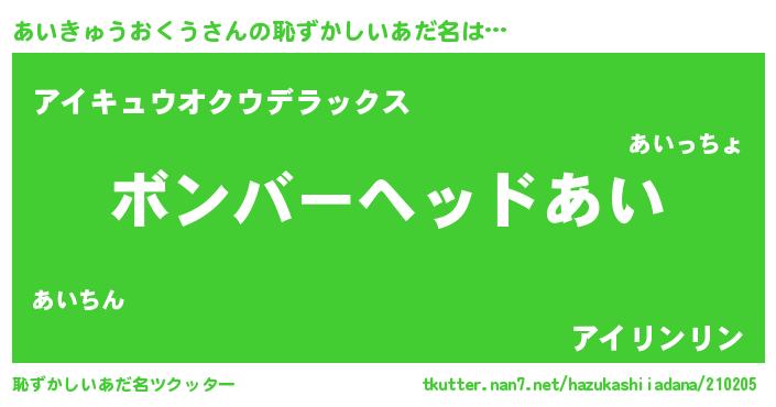 | ヒーロー風カッコイイあだ名 | 『慈愛の使者あいきゅうおくう』 |
