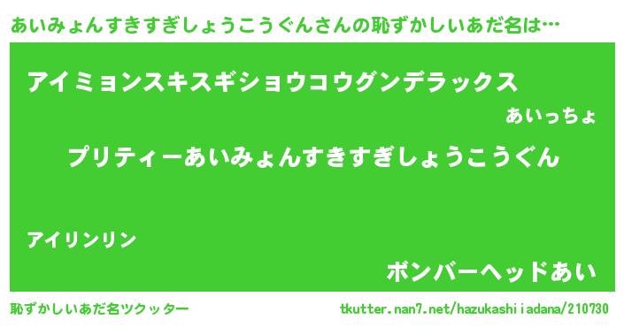 | 男性向けラノベタイトル風あだ名 | 『この素晴らしい世界にあいみょんすきすぎしょうこうぐんを!』 |