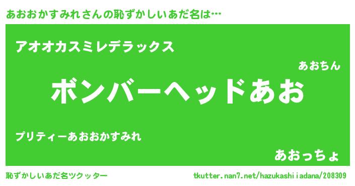 | 欧米人風あだ名 | 『ダニエルあおおかすみれ』 |
