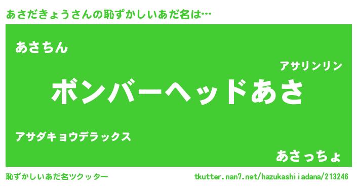 | ヘコむあだ名 | 『あさだきょう(苦笑)』『豆乳』 |