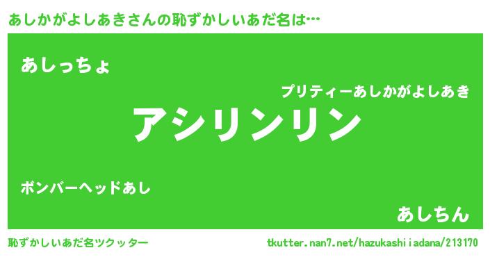 | ヘコむあだ名 | 『あし太郎』『牛乳』『あしふぇ~』 |