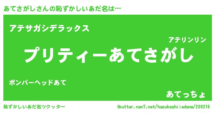 | ヒーロー風カッコイイあだ名 | 『仮面アテダー』『スーパーアテサガシ』 |