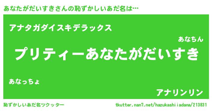 | ヘコむあだ名 | 『あなっふぃ~』『あなお』 |