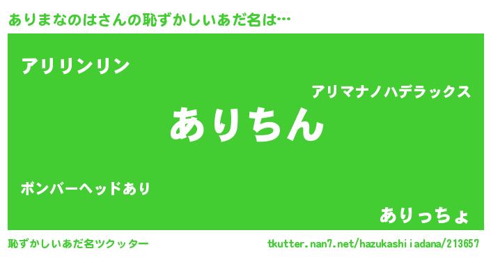| ヘコむあだ名 | 『ありまなのは(遠い目)』『ありっ子』 |