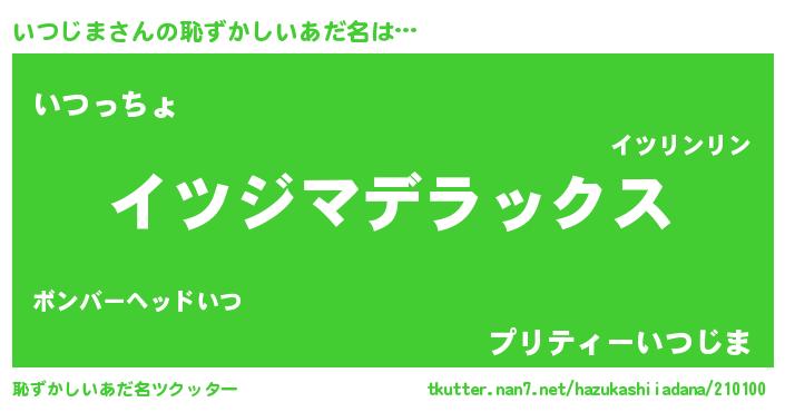| 意味不明あだ名 | 『自称いつじま』『いつじまフォーエバー』 |