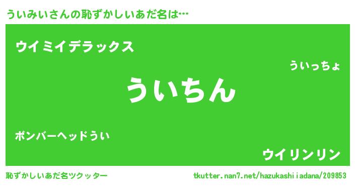 | ヘコむあだ名 | 『ういみい(苦笑)』『ういを』 |