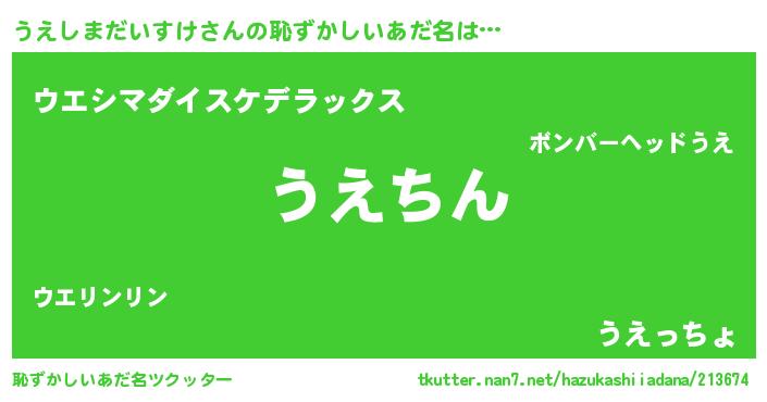 | ヘコむあだ名 | 『うえしまだいすけ(爆)』『なまこ酢』 |