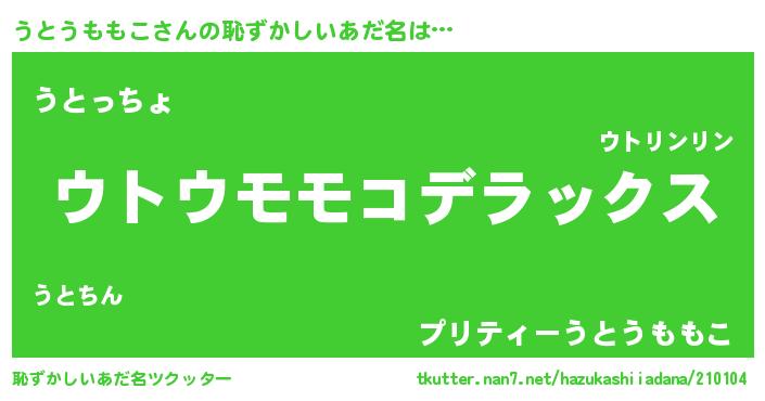 | 男性向けラノベタイトル風あだ名 | 『この素晴らしい世界にうとうももこを!』 |