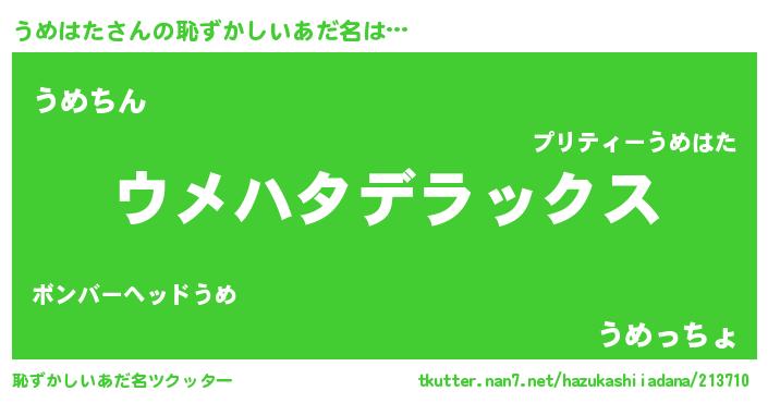 | ヒーロー風カッコイイあだ名 | 『仮面ウメダー』『超時空戦士ウメハタ』 |