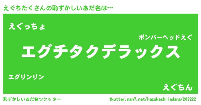 | 意味不明あだ名 | 『自称えぐちたく』『永久保存えぐちたく』 |