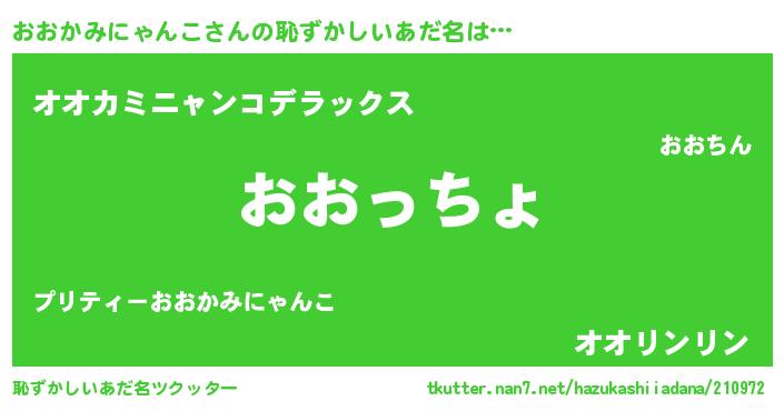 | 男性向けラノベタイトル風あだ名 | 『この素晴らしい世界におおかみにゃんこを!』 |