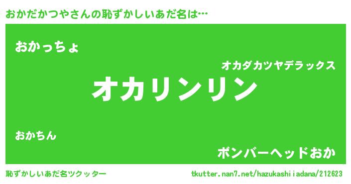 | 男性向けラノベタイトル風あだ名 | 『おかだかつやの嫁は女の子じゃないと思った?』 |