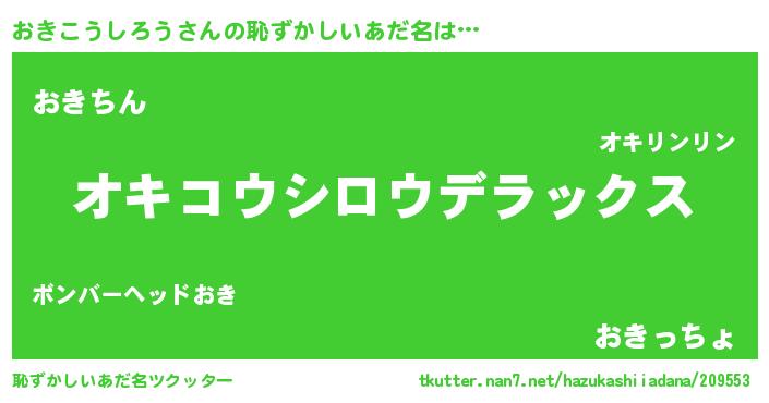 | 意味不明あだ名 | 『自称おきこうしろう』 |