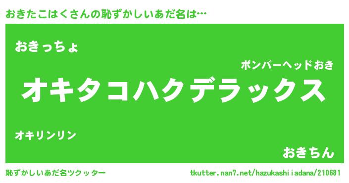 | 女子向けラノベタイトル風あだ名 | 『おきたこはくアンティーク』 |