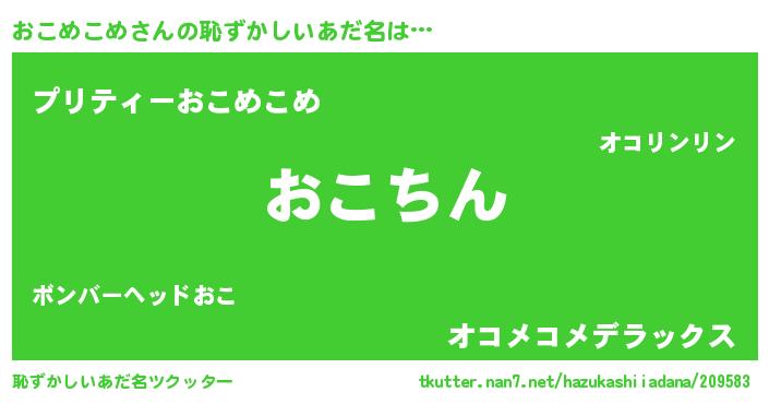 | 意味不明あだ名 | 『永久保存おこめこめ』『自称おこめこめ』 |