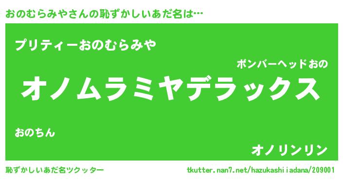 | 意味不明あだ名 | 『住所不定無職おのむらみや(74歳)』 |