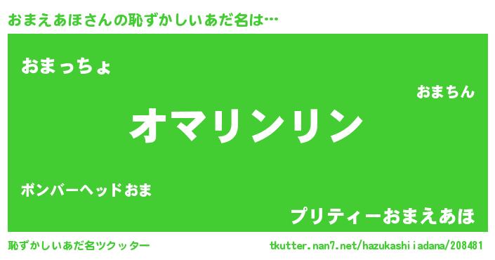 | 意味不明あだ名 | 『とにかく怪しいおまえあほ』 |