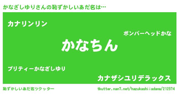 | ヘコむあだ名 | 『かなざしゆり(笑)』『かなお』 |