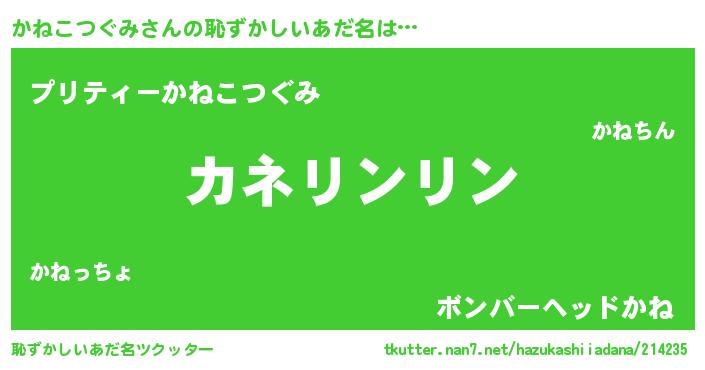 | 男性向けラノベタイトル風あだ名 | 『かねこつぐみの嫁は女の子じゃないと思った?』 |