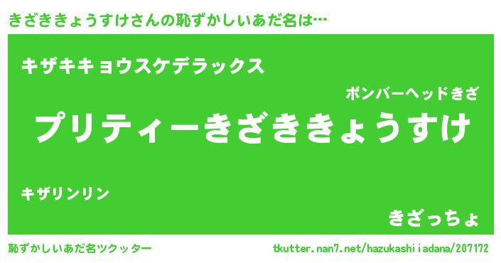 男性向けラノベタイトル風あだ名 | 『きざききょうすけの憂鬱』 |