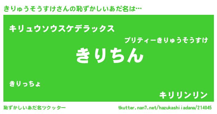 | ヘコむあだ名 | 『きりゅうそうすけ(震え声)』『きりを』 |
