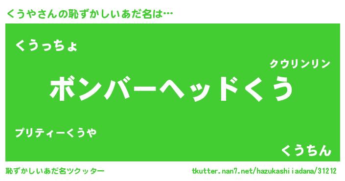 | 意味不明あだ名 | 『めかぶ科くうや属』『永久保存くうや』 |
