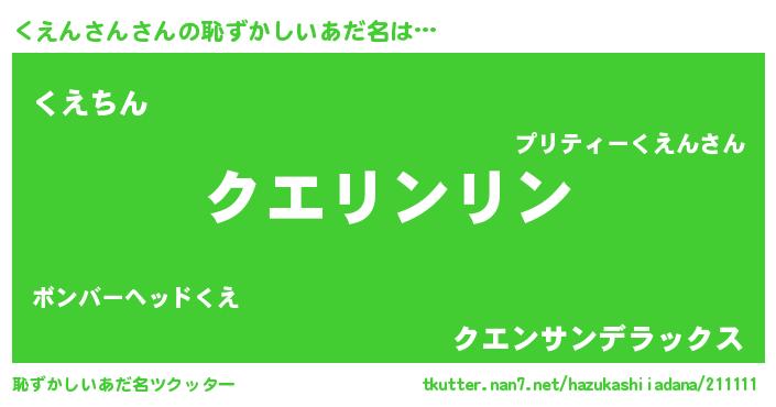 | 可愛いあだ名 | 『くっえぃー』『くえんさんママ』 |