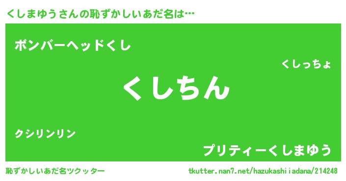 | ヘコむあだ名 | 『くしまゆう(笑)』『くしっふぃ~』 |