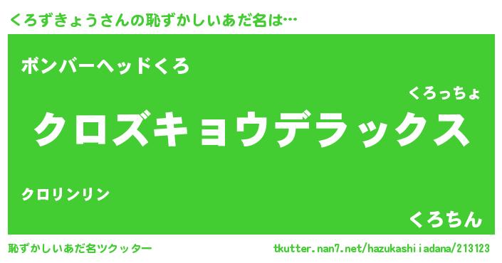 | 意味不明あだ名 | 『自称くろずきょう』 |