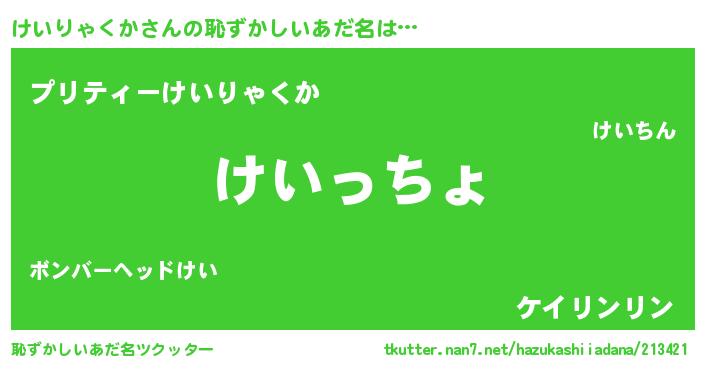 | 女子向けラノベタイトル風あだ名 | 『けいりゃくかが死なない童話 林檎のけいりゃくかの診療簿』 |