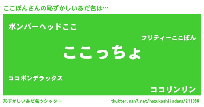| 欧米人風あだ名 | 『ここぽんクリステル』 |