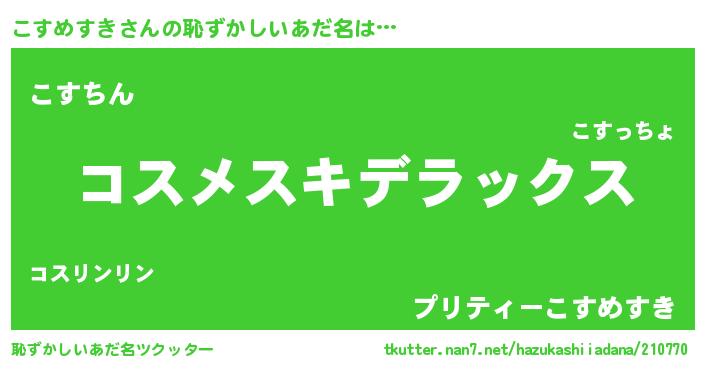 | ヘコむあだ名 | 『こすめすき(笑)』『こすもー』 |