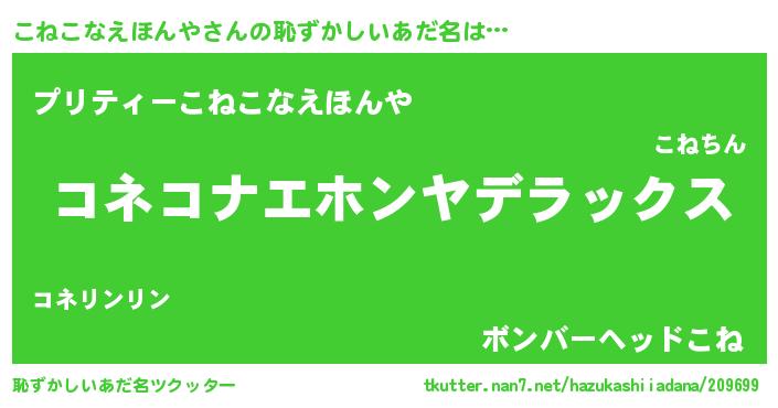 | ヘコむあだ名 | 『こねにー』『こねこなえほんや(小並感)』 |