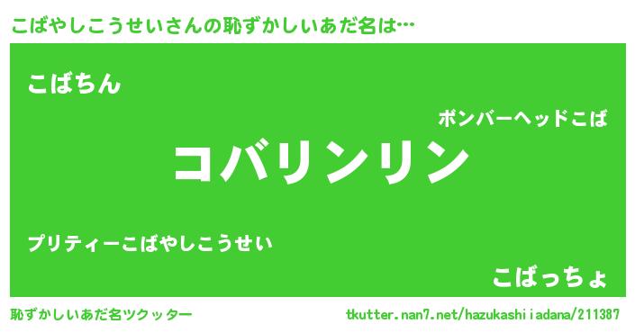 | 可愛いあだ名 | 『こっばぃー』『こばやしこうせいママ』 |