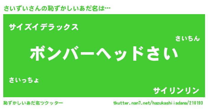 | 意味不明あだ名 | 『住所不定無職さいずい(4歳)』 |