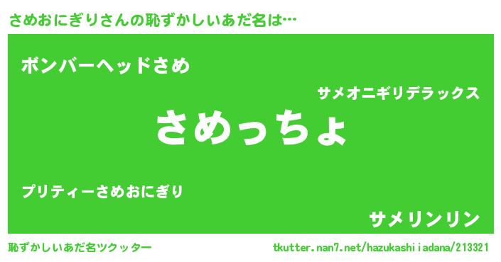 | 欧米人風あだ名 | 『さめおにぎりクリステル』 |