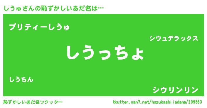 | 意味不明あだ名 | 『しうゅフォーエバー』『ペロリンしうゅ』 |