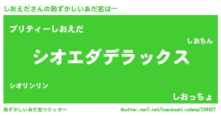 | 男性向けラノベタイトル風あだ名 | 『Re:しおえだから始める異世界生活』 |