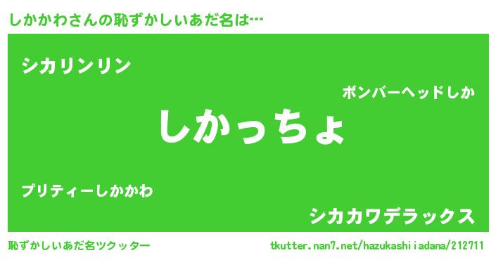 | 意味不明あだ名 | 『しかかわフォーエバー』『自称しかかわ』 |