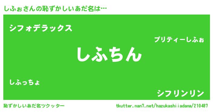 | 意味不明あだ名 | 『永久保存しふぉ』『自称しふぉ』 |