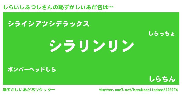 | ヘコむあだ名 | 『しらっ子』『しらいしあつし(笑)』 |
