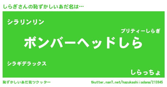 | ヘコむあだ名 | 『しらぷりん』『酢こんぶ』 |
