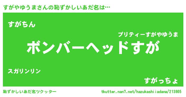 | ヘコむあだ名 | 『すがやゆうま(笑)』『酢こんぶ』 |