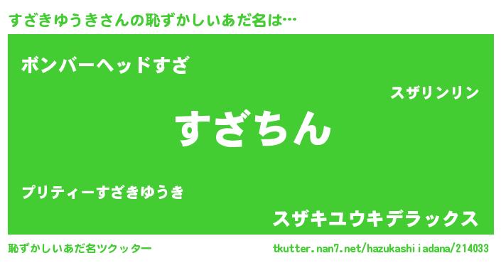 | ヘコむあだ名 | 『すざきゆうき(笑)』『すざっ子』 |