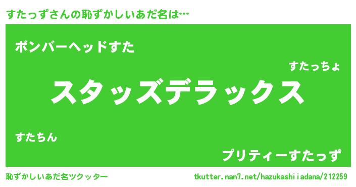 | ヘコむあだ名 | 『すたにー』『豆乳』『すたっちょ』 |