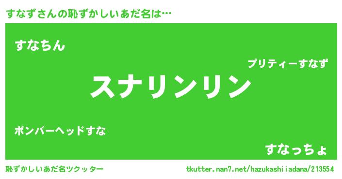| ヘコむあだ名 | 『すなぷりん』『すなず(小並感)』 |
